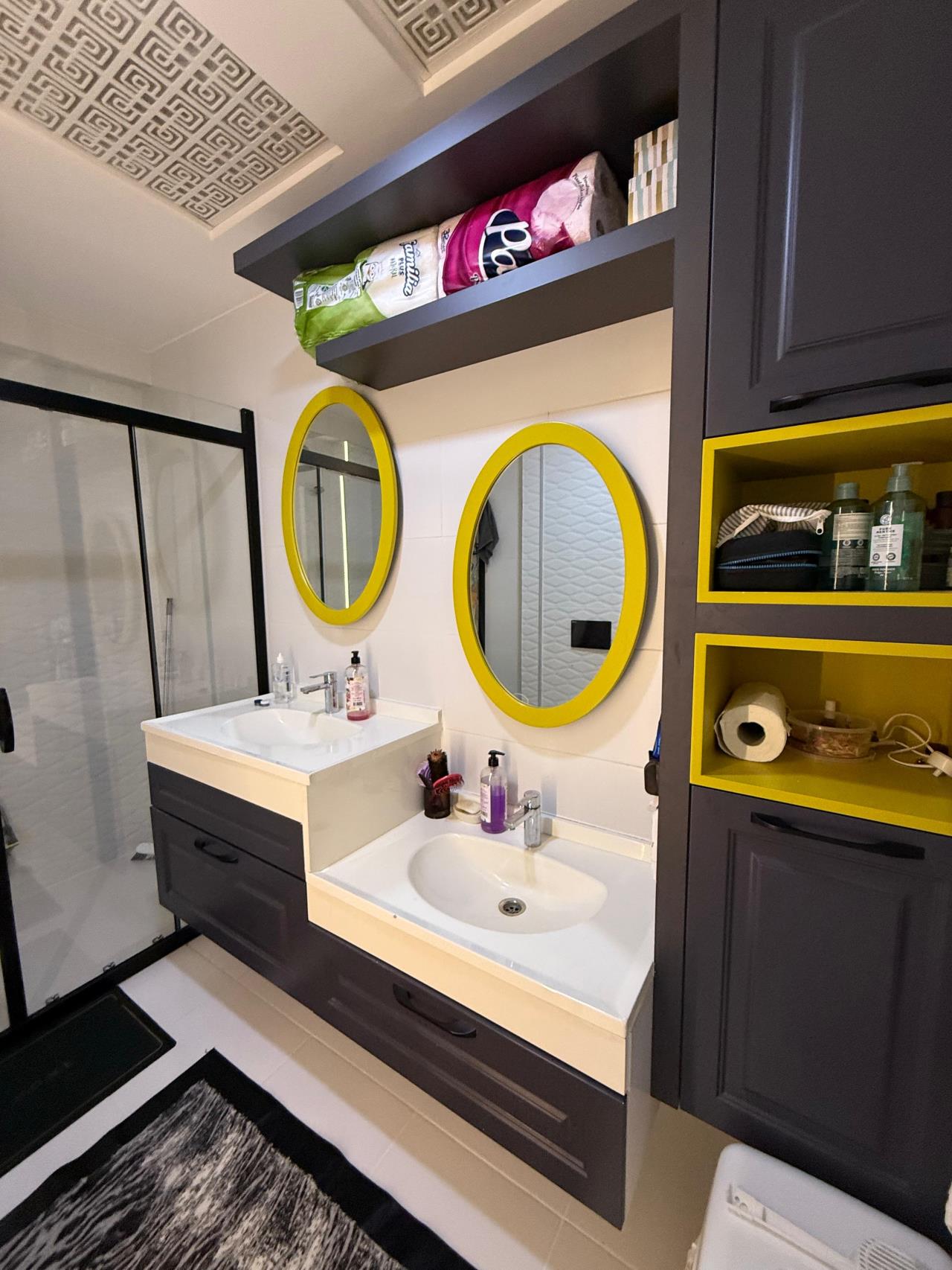 Dairede biri ebeveyn banyosu olmak üzere çift banyo bulunmaktadır ve her ikisinde de duşakabin mevcuttur.
